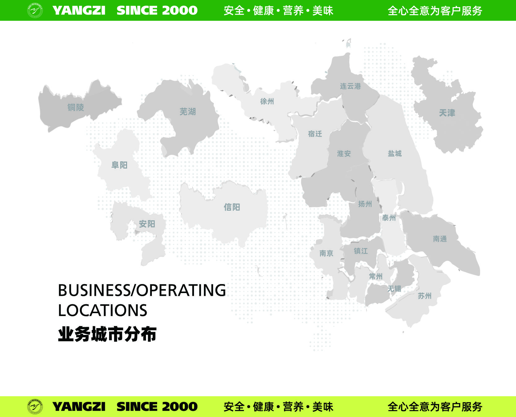 揚(yáng)子餐飲有限公司以“為客戶提供優(yōu)質(zhì)的產(chǎn)品和服務(wù)”為使命,以“打造餐飲行業(yè)第一品牌,成為餐飲行業(yè)第一領(lǐng)導(dǎo)者”為愿景,以“成為客戶首選品牌”為目標(biāo),始終堅(jiān)持“全心全意為客戶服務(wù)”的經(jīng)營宗旨。